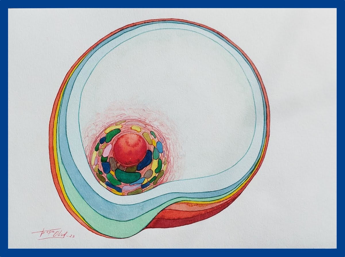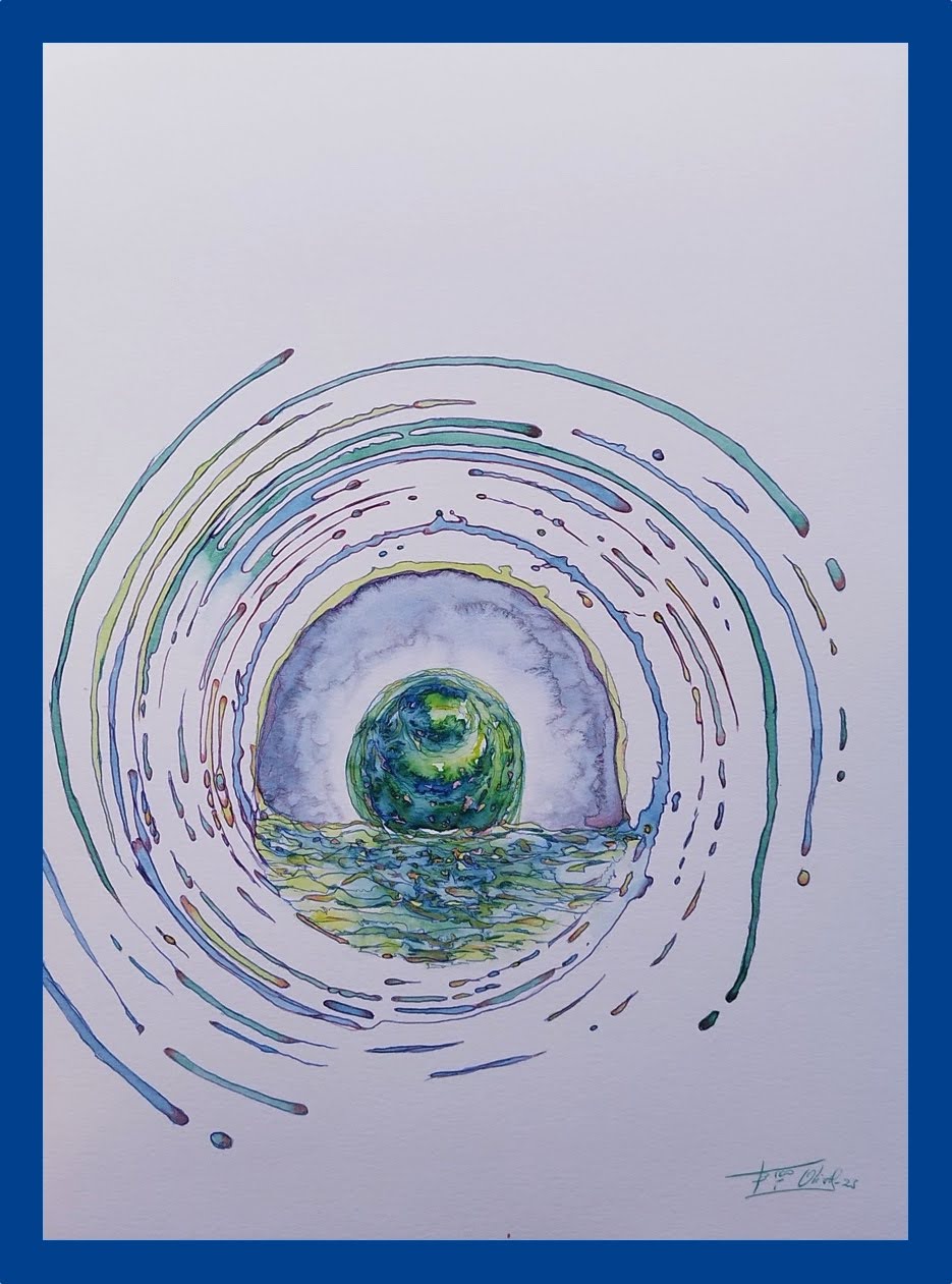 emociones, mis pensamientos y mi experiencia creadora. La mancha llena el vacío del espacio, para caracterizarlo con la forma esférica que se representa en cada cuadro. La esfera supone el producto y el medio a la vez que, singulariza cada producción, dándole una localización central, cargada de abstracción y suponiendo una variedad visual distinta, para cada una de las personas que la miren.