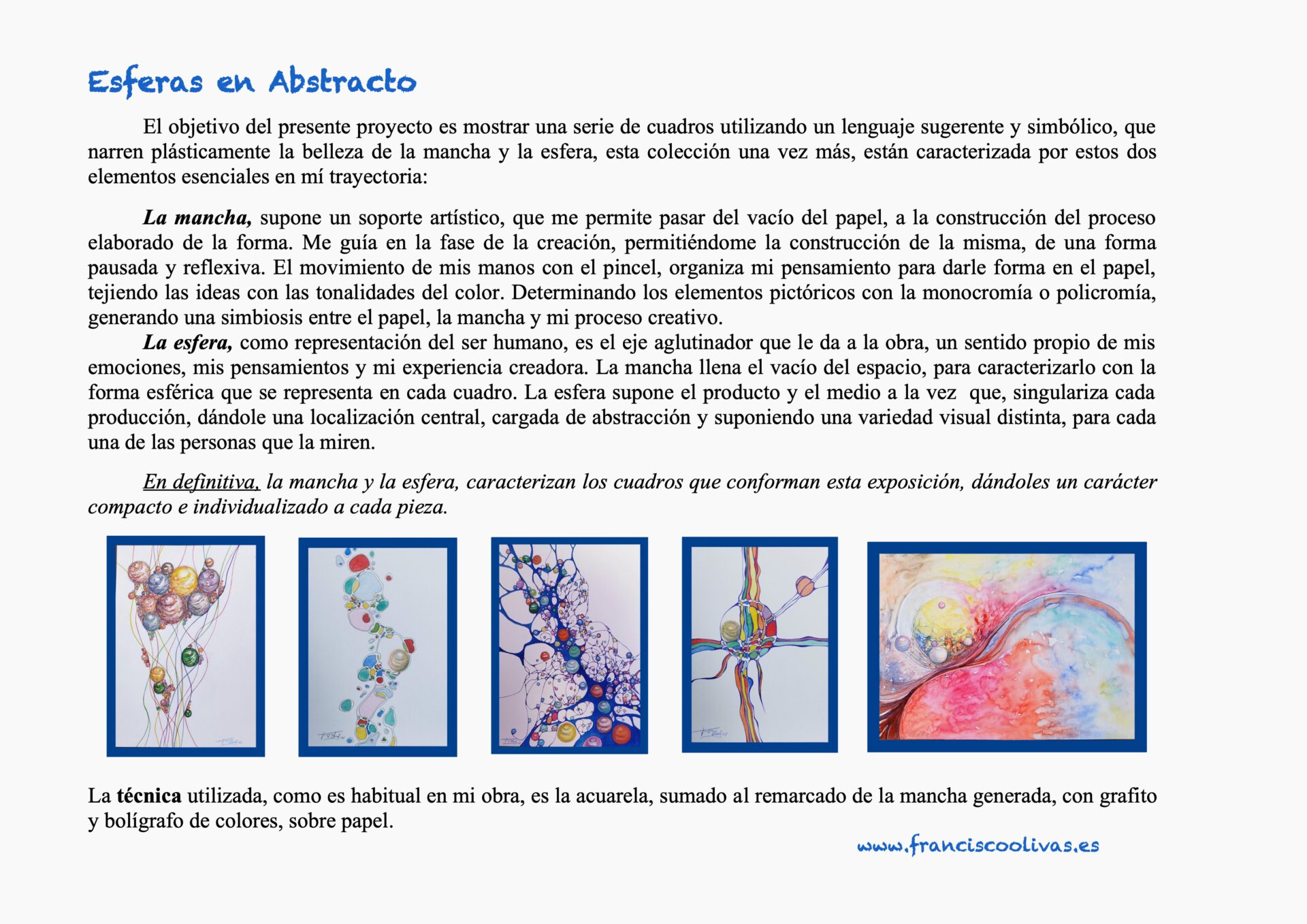 El objetivo del presente proyecto es mostrar una serie de cuadros utilizando un lenguaje sugerente y simbólico, que narren plásticamente la belleza de la mancha y la esfera, esta colección una vez más, están caracterizada por estos dos elementos esenciales en mí trayectoria: